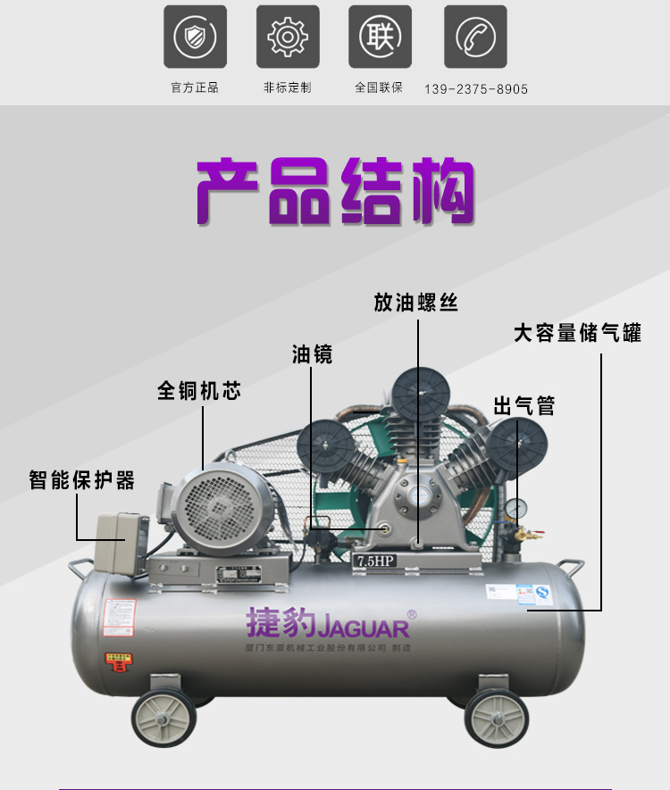 ET-120捷豹活塞式空压机11KW/15HP所属类型:风冷微油空压机