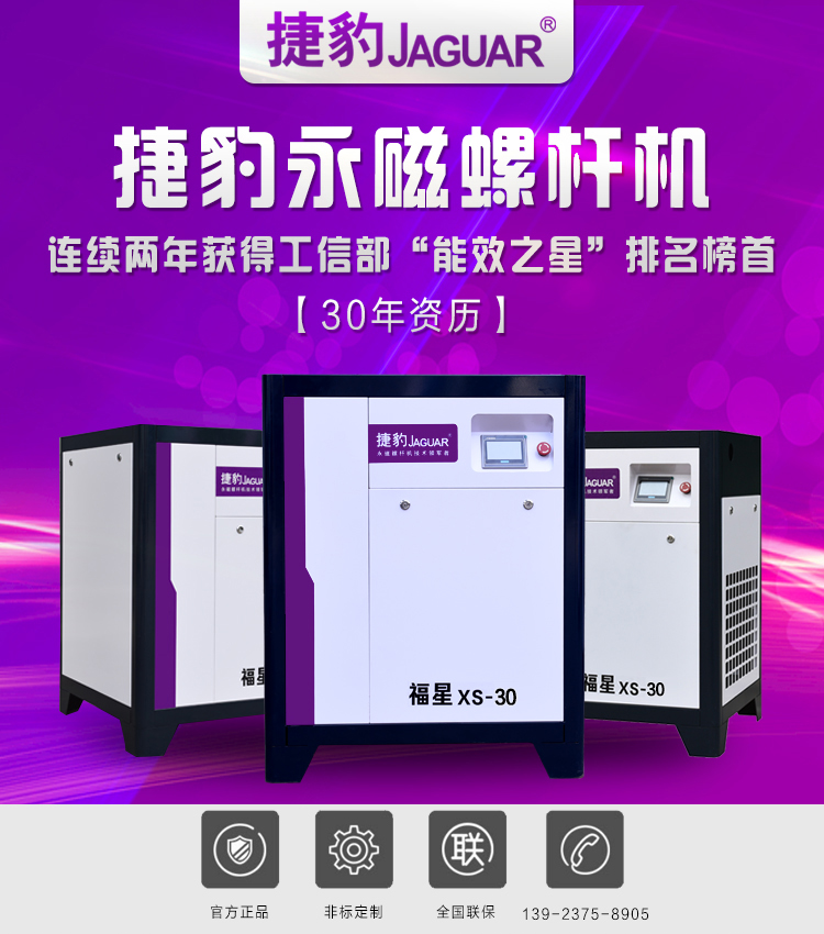 产品简介:捷豹永磁变频螺杆机连续三年工信部“能效之星”排名榜首,欢迎广大客户选购。