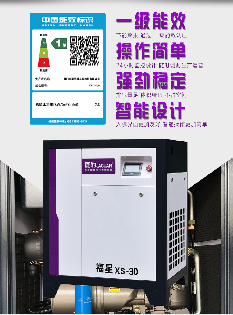 福星XS-40捷豹牌空压机永磁变频一级能效 30KW/40HP空压机所属类型:福星永磁变频空压机
