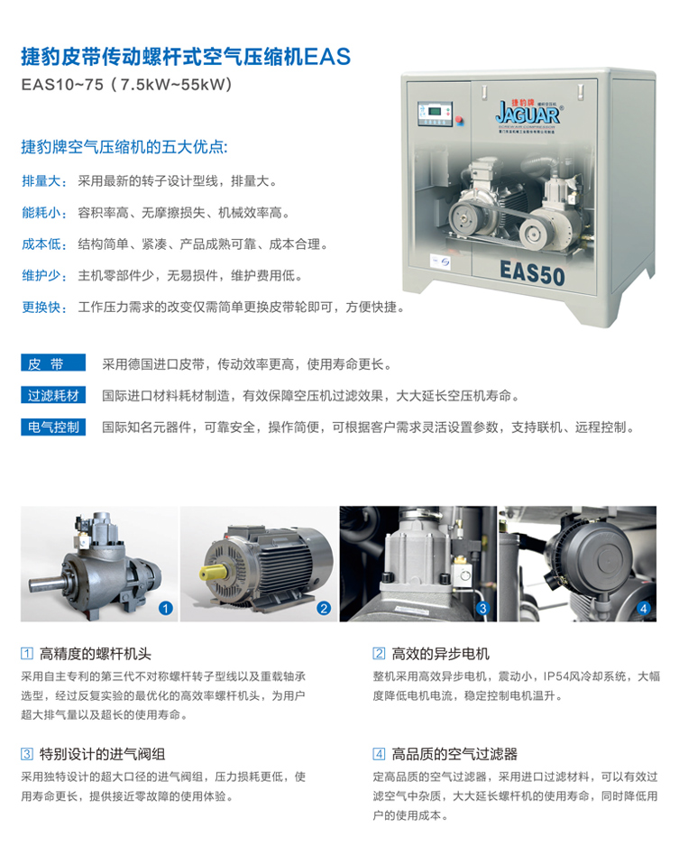 EAS-15捷豹牌空压机皮带式11KW/15HP所属类型:皮带螺杆机